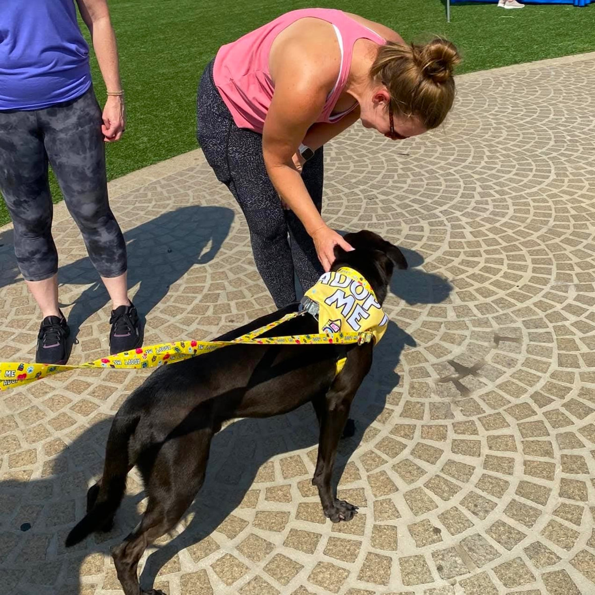 A sweet bandana announcing adoptable dogs with "Be My Hero" and "Adopt Me" sayings.